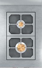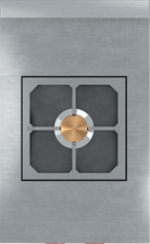 Single gas burner installed beneath a solid stainless steel top, serving as the heat source for the entire surface. The surface becomes the cooking source and offers variable heat zones with the strongest heat in the center (up to 785F), directly above the burner, and diffusing outwards (around 175F on outer edges). Allows for multiple sauce pans above a single indirect heat source, one of the most powerful and versatile tools in any chef’s arsenal, it is the only choice for slow cooking at low temperatures, simmering decadent sauces and multi-stage recipes.