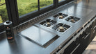 Ultra high-efficiency smart burner at 30,000 BTUs equivalent. Equipped with electric ignition and safety thermocouple. Specially designed for BBQ grilling over lava rocks, this unit can easily (and safely) attain 500 scorching degrees Fahrenheit. You will never use a grill that heats more quickly or with greater energy efficiency. Adding a lava rock grill truly makes your L’Atelier ranges an “all-in-one” cooking unit to be envied.